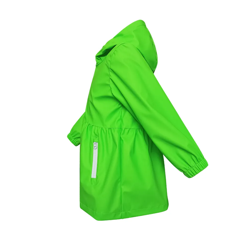 Children Fashion Rain Jacket PU Coat Waterproof with Elastic at Hem