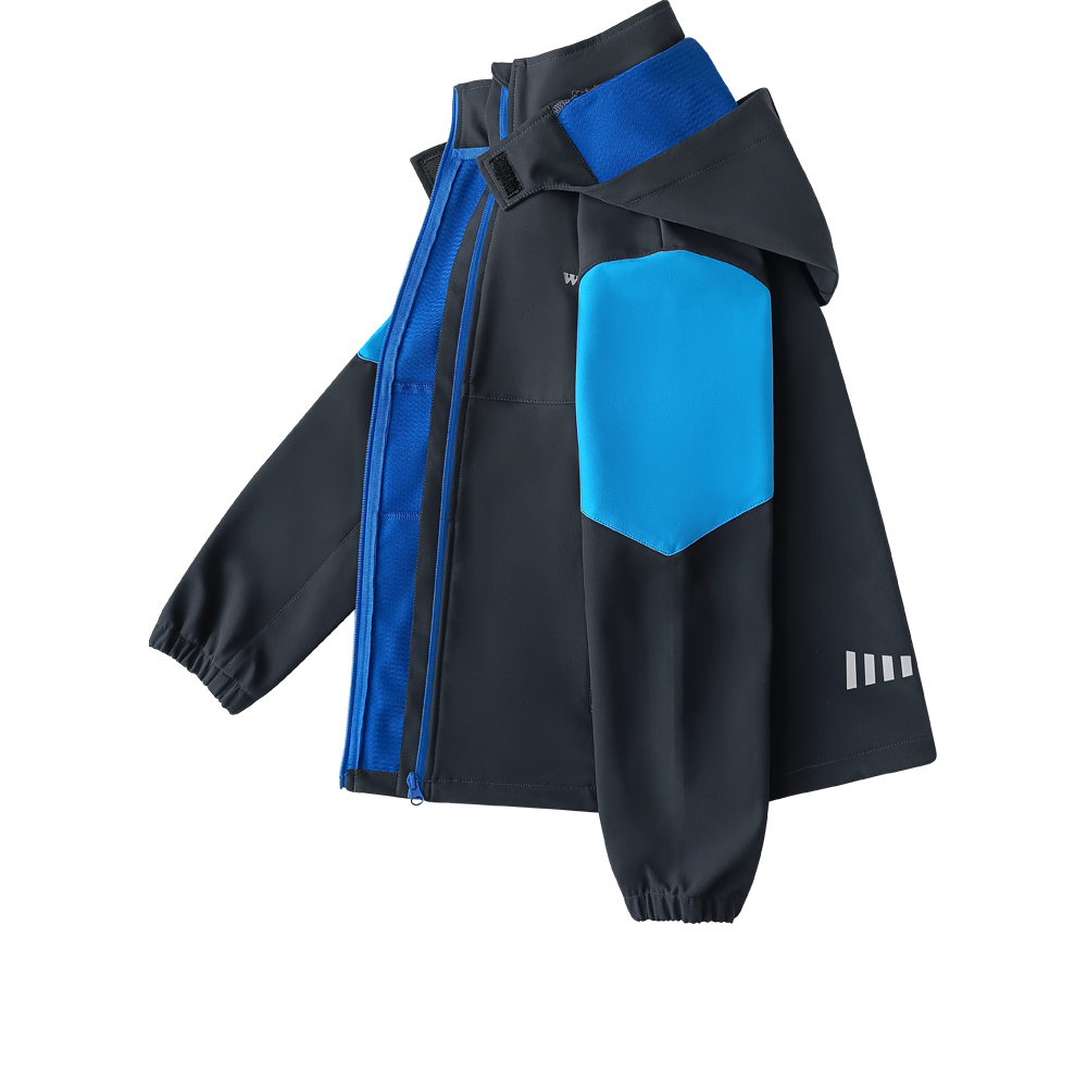 बच्चों के लिए आउटडोर सॉफ्टशेल जैकेट, पीठ पर जाली के साथ