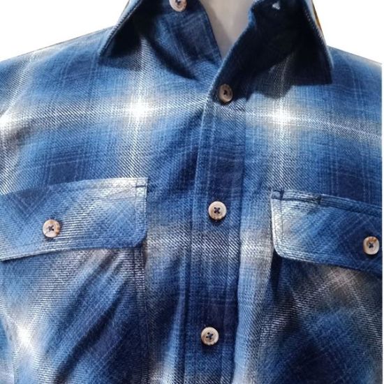 Style:Men′s 100%Cotton Yarn Dye Chambray Plaid Long Sleeve Woven Shirts