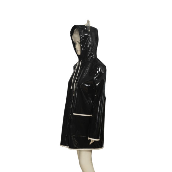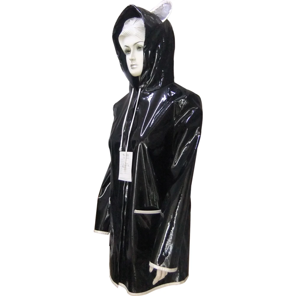 This is very fashion shinning PU leather raincoat for women with lovely cat ears on the hat