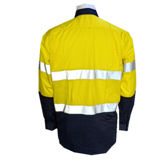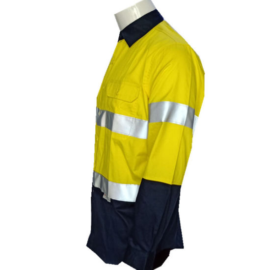 Gaya: Pabrik Kontras Warna Kuning dan Biru Laut Kemeja Kerja dengan Reflektif