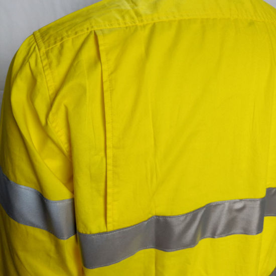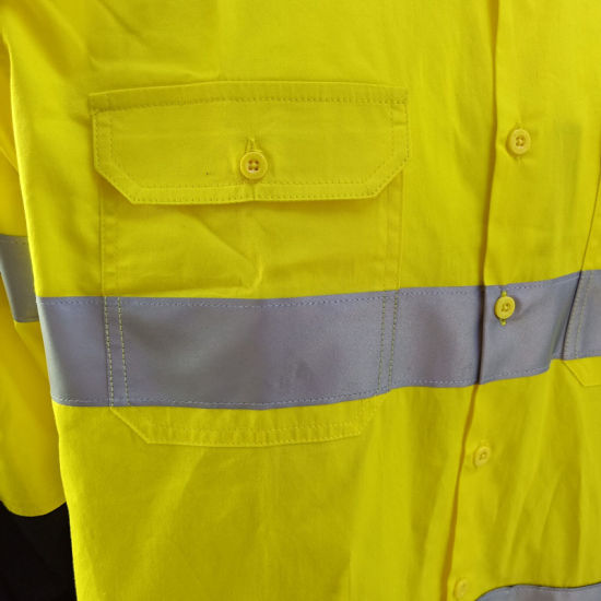 | Nama gaya | Kemeja Kerja Warna Kontras Pabrik Kuning dan Hitam dengan Reflektif |