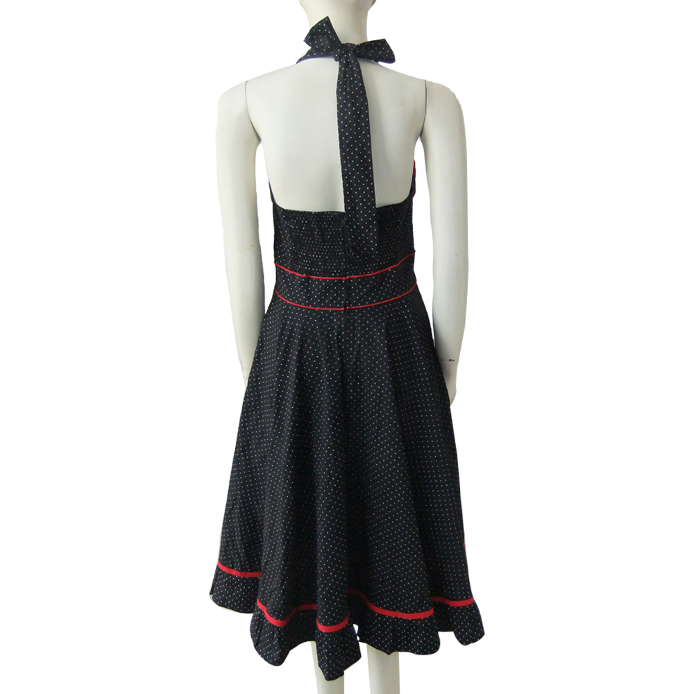 शैली: वर्गाकार घाँटी, ब्याकलेस, बाहुला र पूर्ण स्कर्ट भएको नयाँ फेसन हल्टर ड्रेस।