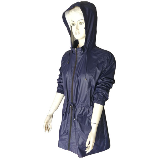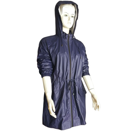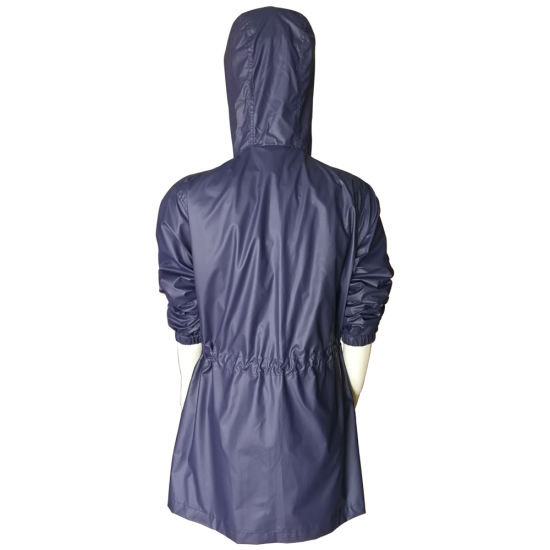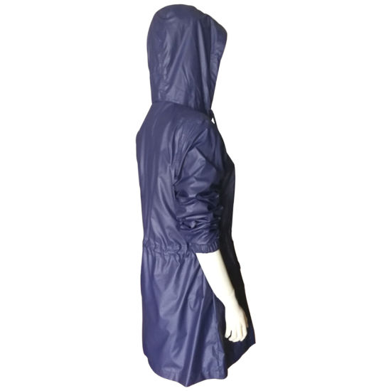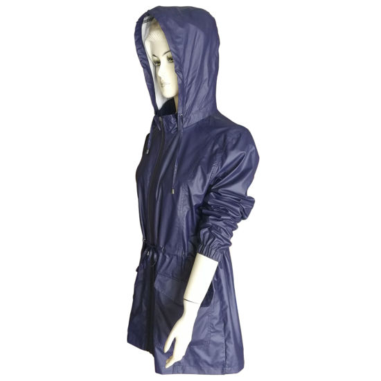 | สไตล์: | Women Fashion PU Rain Long Jacket with Drawsting at Waist | |||||||